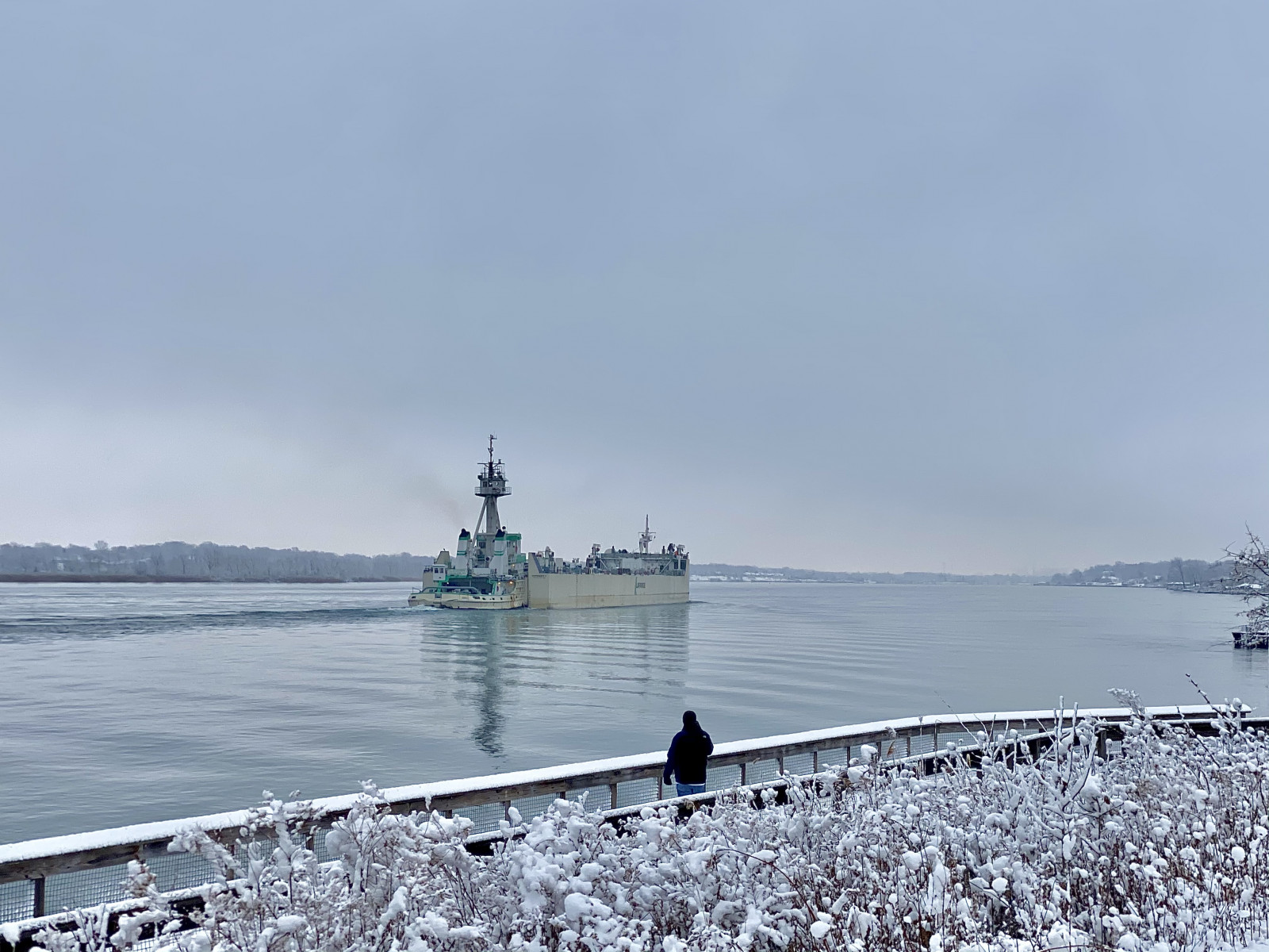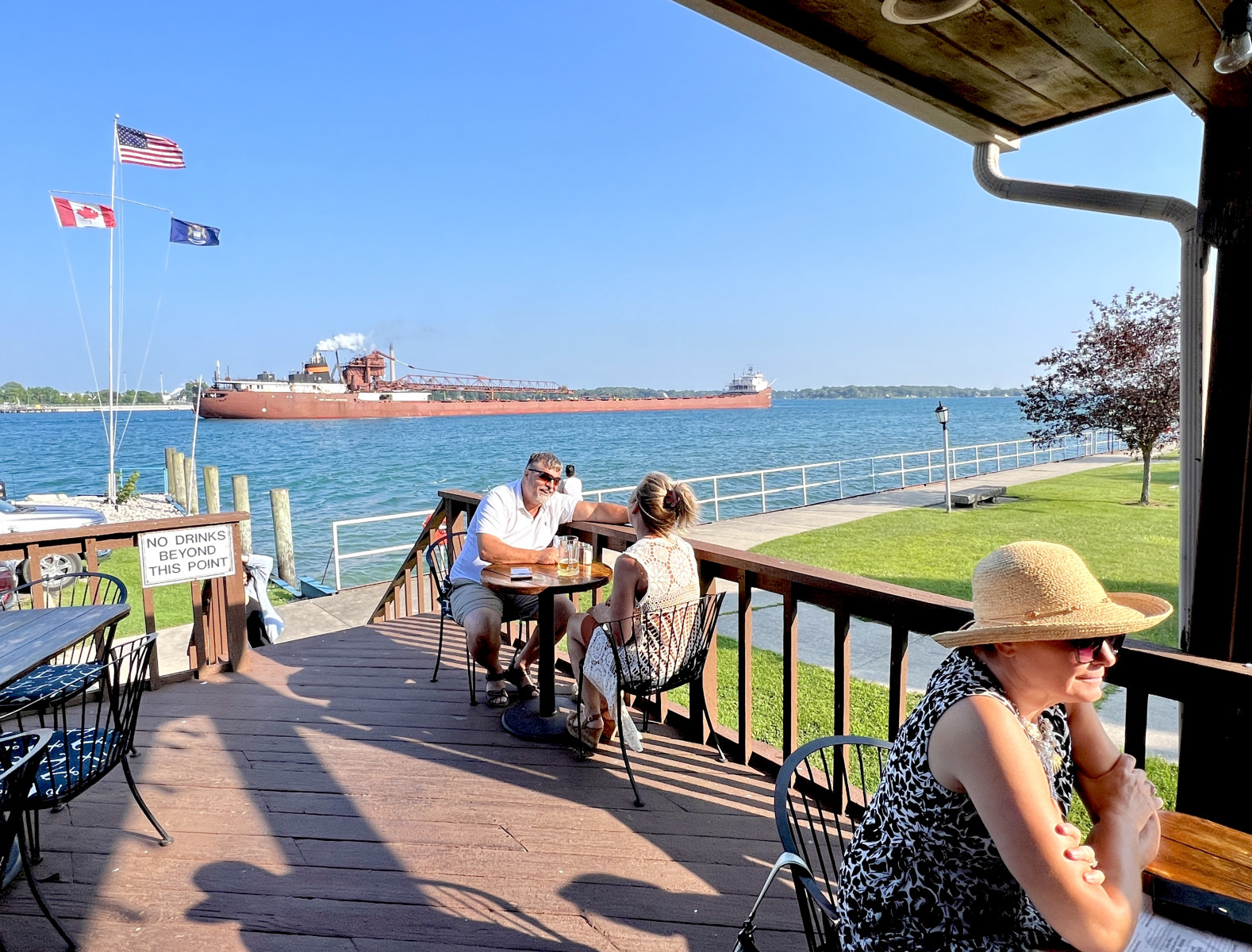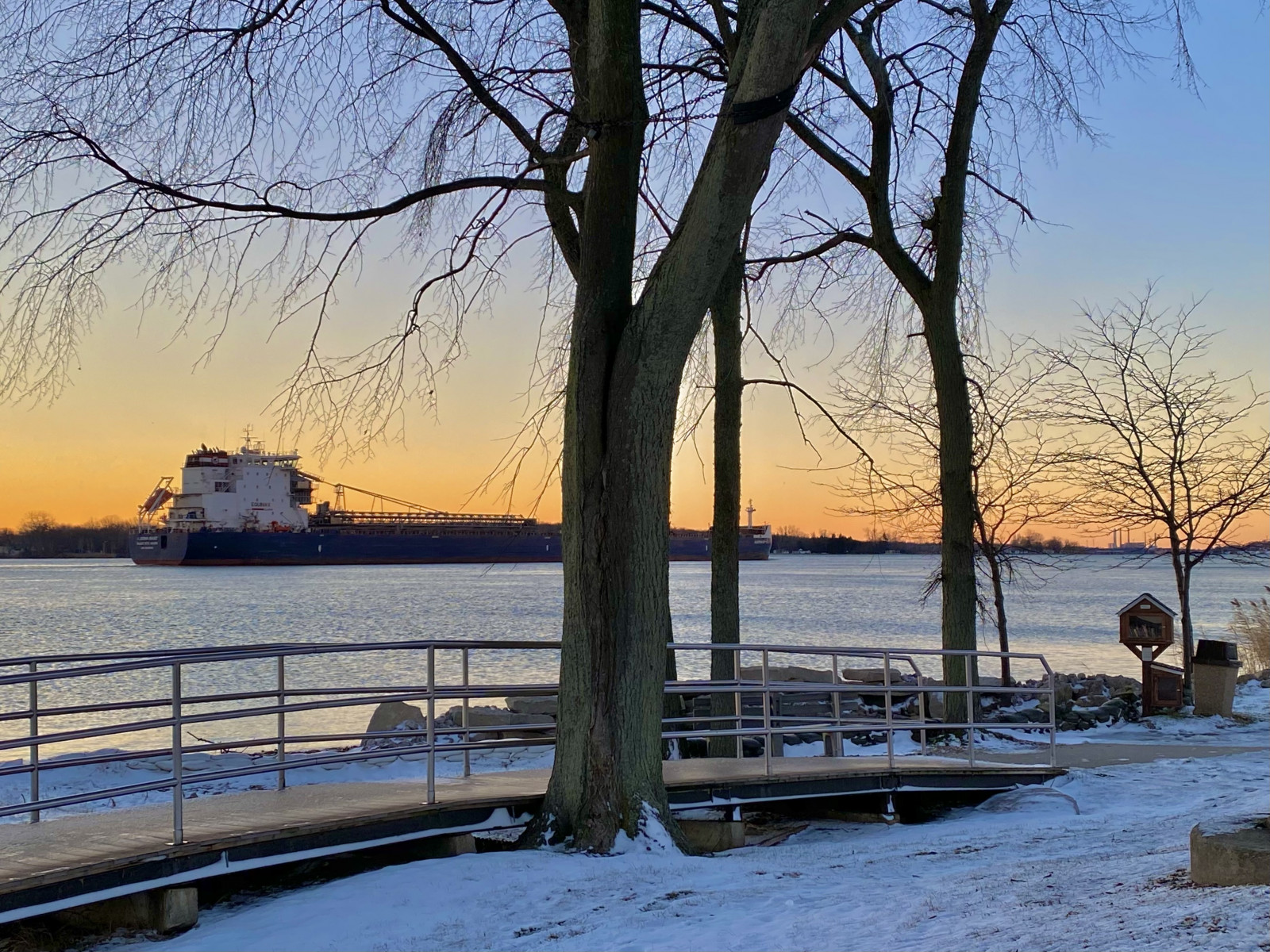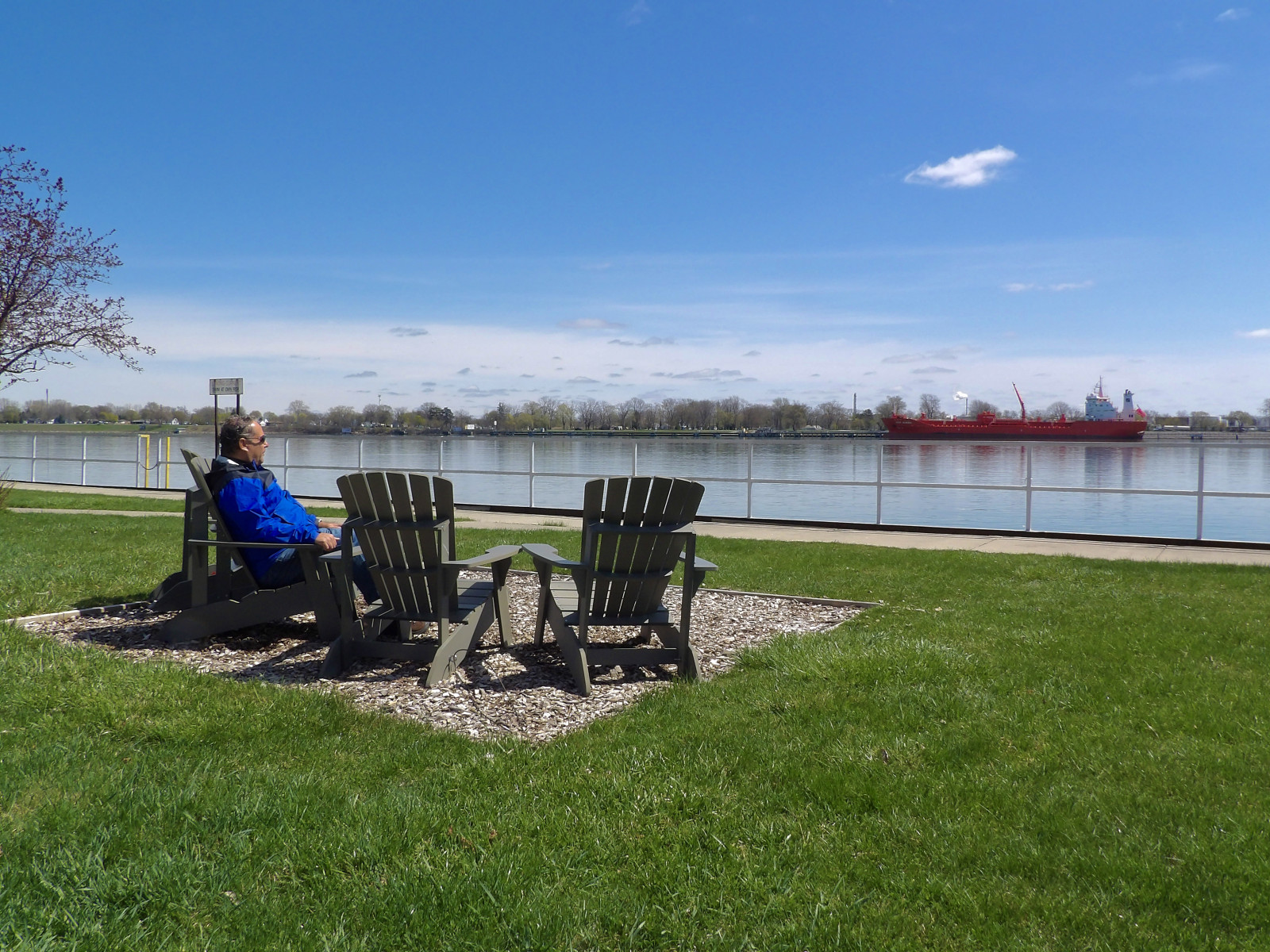 Beach & living shoreline walk on the St. Clair River with view of passing freighters. Also known as Chrysler Beach.