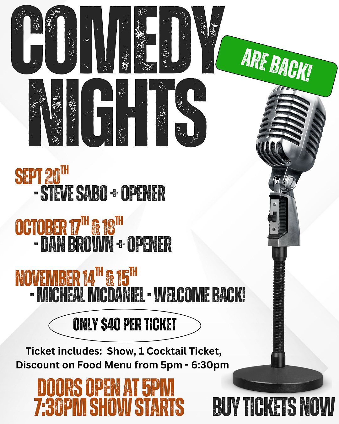 Comedy Night at TAP Event Room: Oct. 17-18