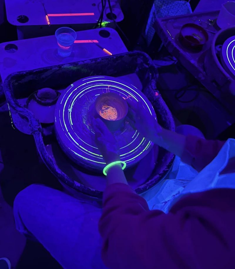 Have you ever heard of cosmic bowling? Well, take that and mix it with our 'just for fun night out' pottery classes and you get Cosmic Glow Party Pottery! Enjoy drinks, blacklights, music and learn pottery all at the same time!