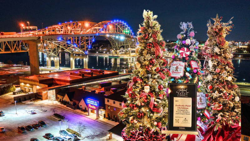 Attire for The Festival of Trees Gala is black-tie optional. Complimentary valet and coat check will be available.
