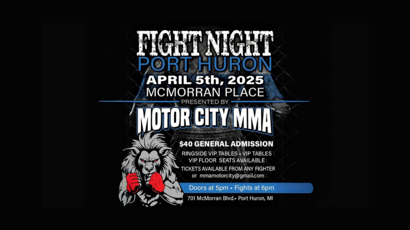 Motor City MMA presents Fight Night in Port Huron! Get ready for MMA action in the McMorran Arena. Tons of fights, 1 Octagon. Doors open at 5pm and the fights start at 6pm. Bar and concessions will be available for purchase. Get tickets now!