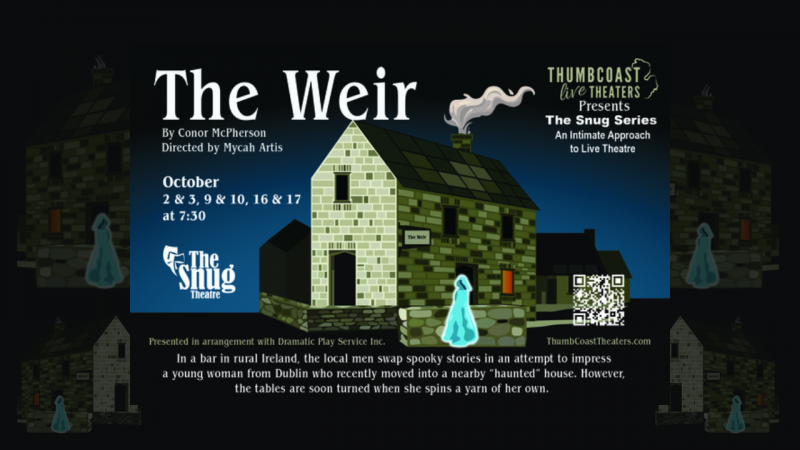 In a small bar called The Weir in a rural town in Ireland, three local men are settling down for the night, enjoying good beer and company. Their normal routine is shaken up when their friend Finland enters the bar and introduces them to Valerie, an attractive woman from Dublin who has just moved into an old haunted house in the town. As the night (and the amount of liquor) progresses, each local from the bar starts to tell a tale of ghostly happenings in the town. What starts as innocent braggadocio between the men turns into a real fright when Valerie reveals a real, haunted tale of her own from the past. Examining chances of missed opportunity and the loneliness that results in it, The Weir is a haunting play with its roots in Irish folklore.