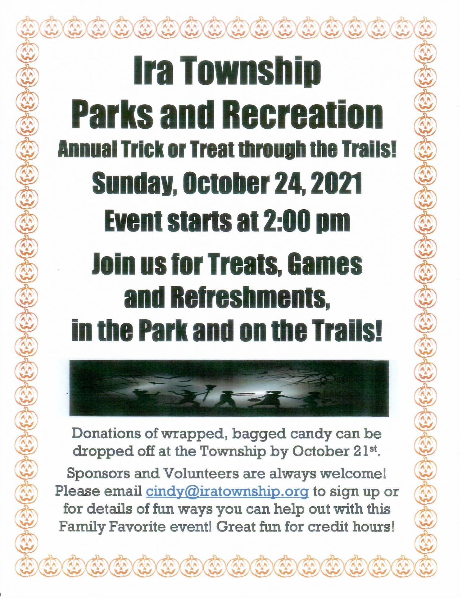 Ira Township Parks and Recreation Trick and Treat through the Trails!