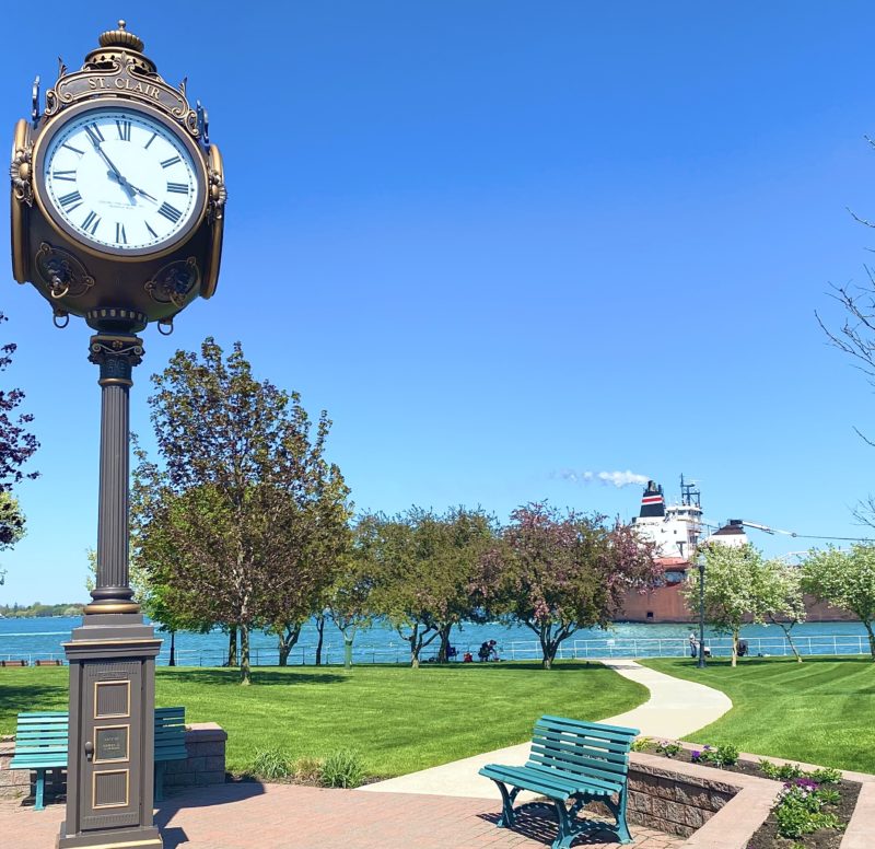 - Algonac Waterfront Park is a long boardwalk with benches, shade and sunny spots, you will only be able to see the passing ships at the north-end of the park because they will be going around Harsens Island. Located at 1130 St. Clair River Dr., Algonac.
